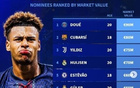 金童奖候选身价排行:杜埃9000万欧居首,库巴西8000万欧第二